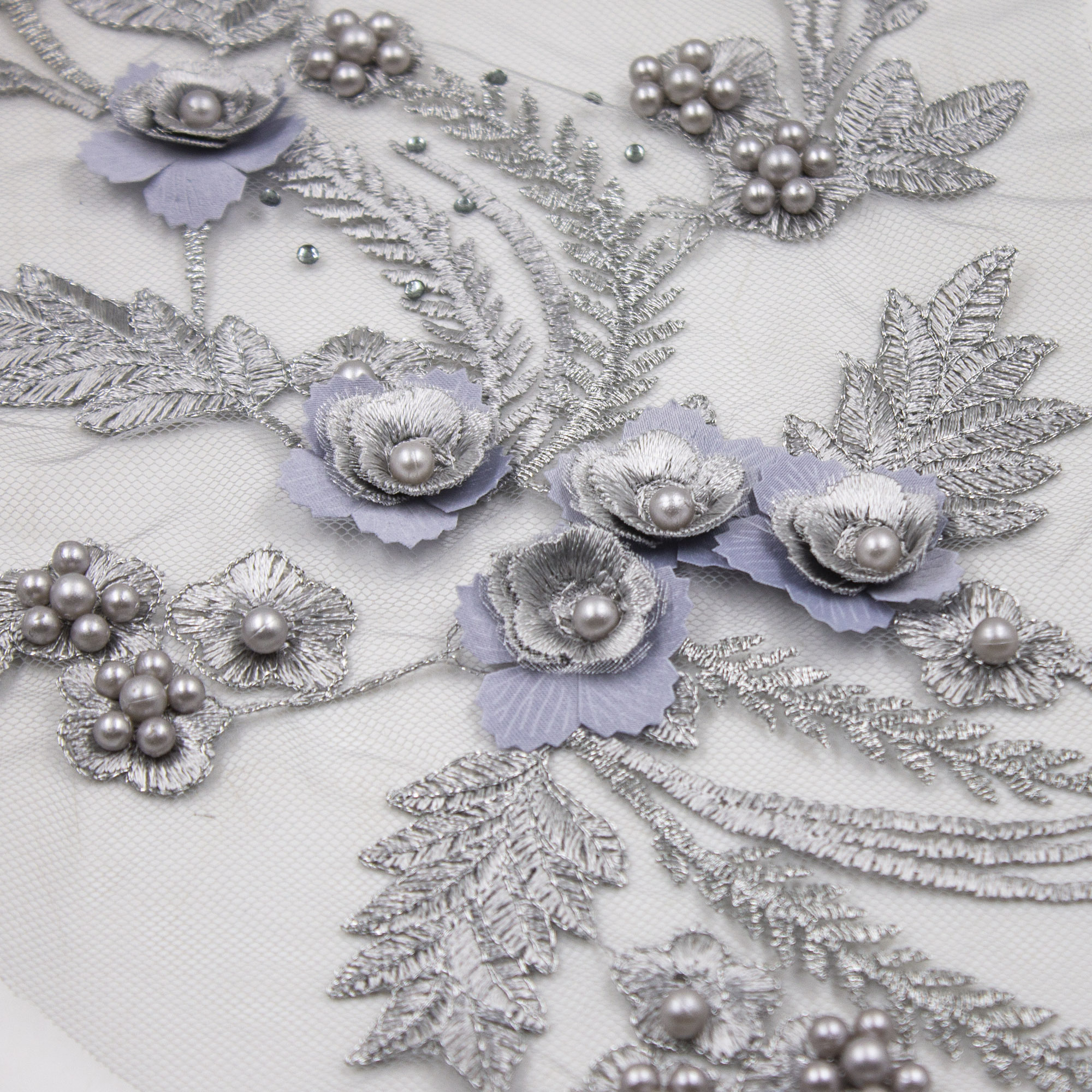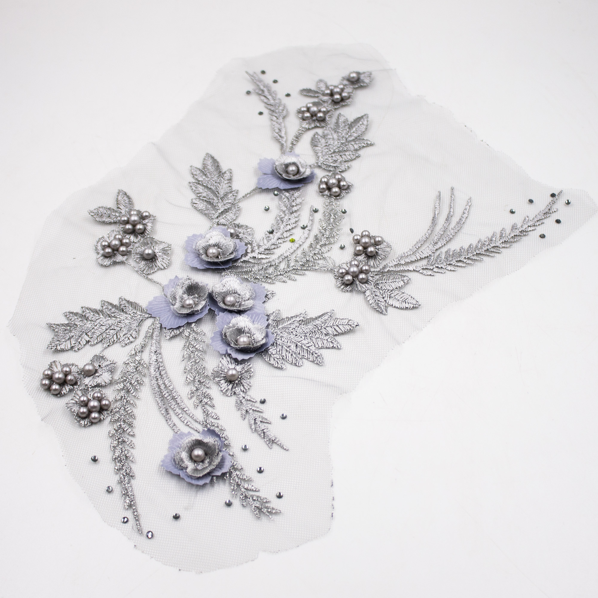 Аппликация лейса 3D на сетке 35*25 см серебро