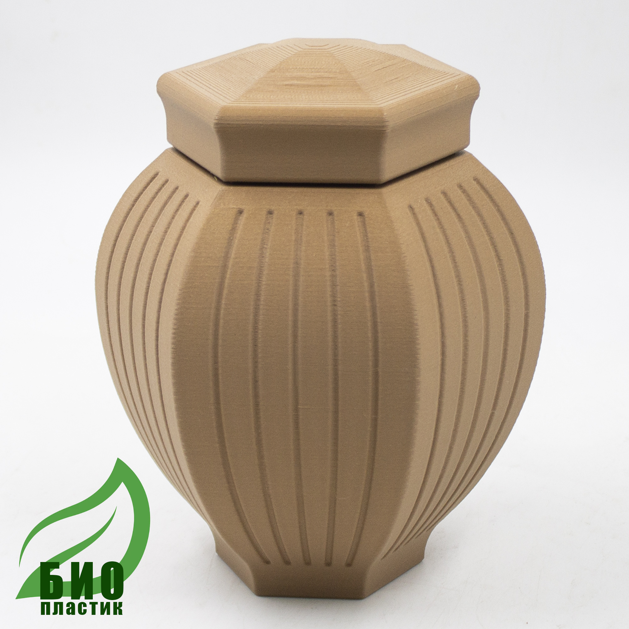 Биоразлагаемые урны из PLA-пластика  — это экологичное решение, предназначенное для захоронения в землю или развеивания праха. Они полностью разлагаются в почве или воде, не нанося вреда окружающей среде. Эти урны отличаются высокой прочностью, устойчивостью к механическим повреждениям и температурным колебаниям.
