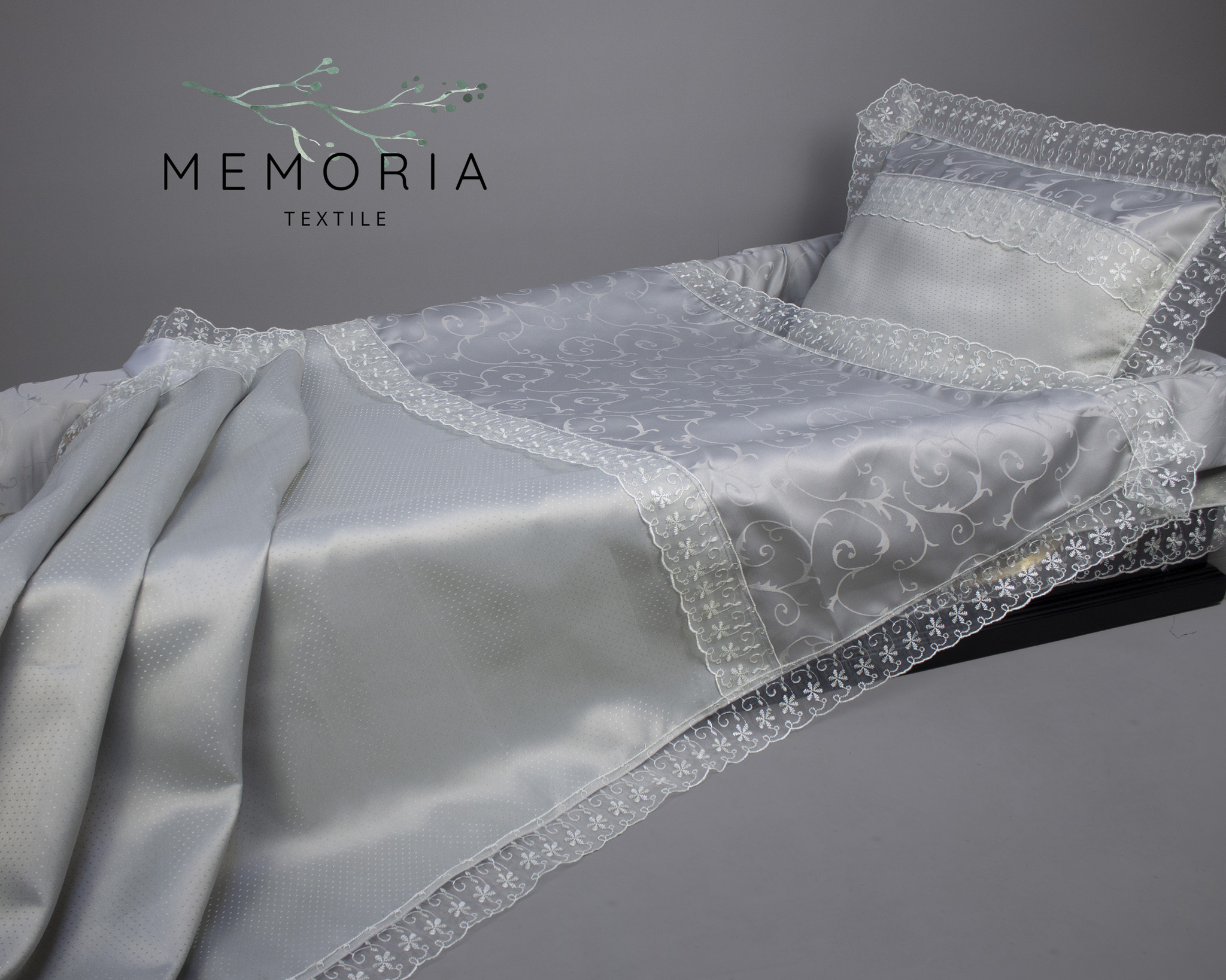 Ритуальный комплект «Гретта» выполнен в утонченном сером оттенке из высококачественного итальянского жаккарда. Изысканная отделка комплекта представлена элегантным кружевом. Этот комплект станет достойным выбором для проведения погребальных церемоний, где каждая деталь имеет значение.