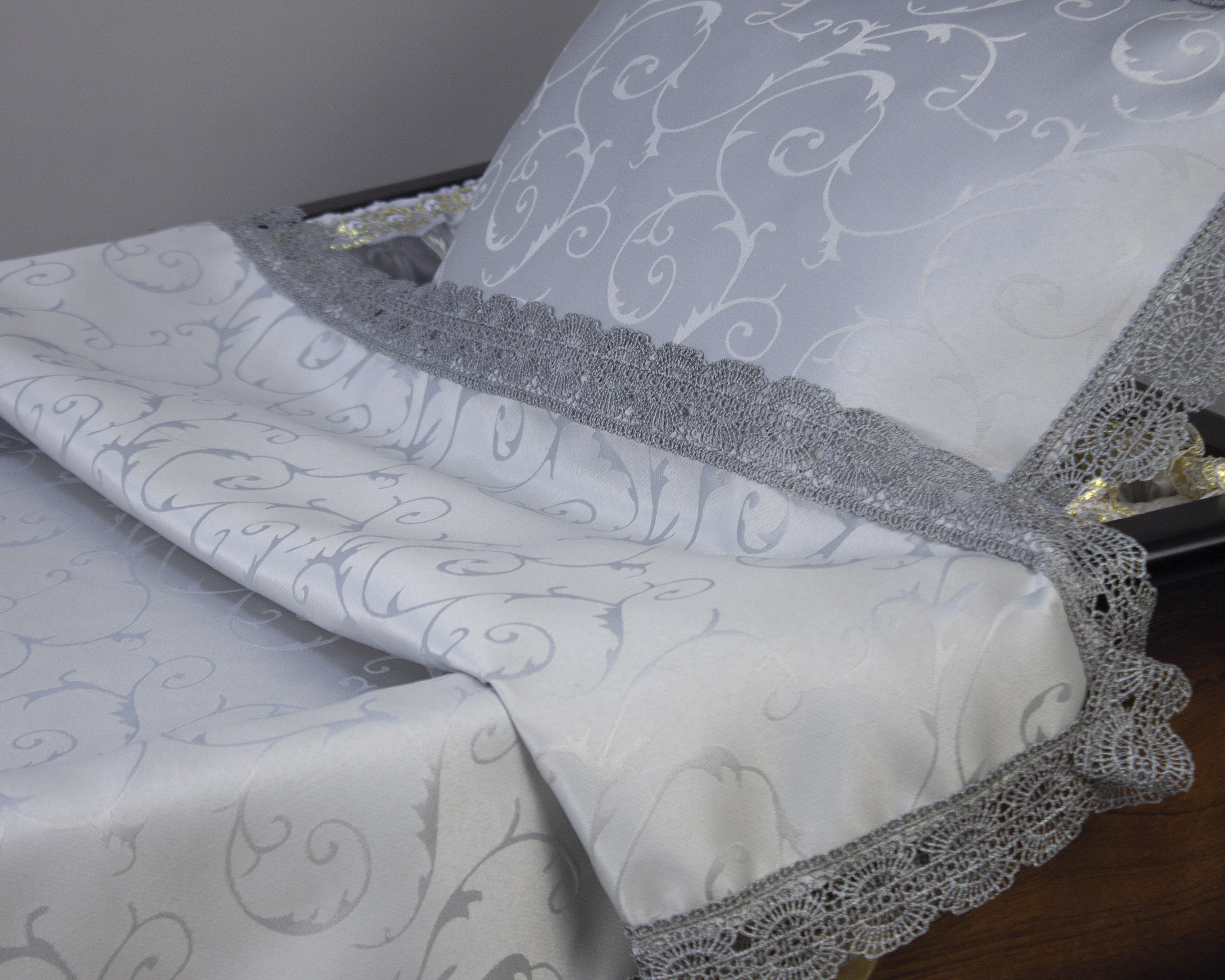 Ритуальный комплект «Лорд» выполнен в утонченном сером оттенке из высококачественного итальянского жаккарда. Изысканная отделка комплекта представлена элегантным вязаным кружевом. Этот комплект станет достойным выбором для проведения погребальных церемоний, где каждая деталь имеет значение.
