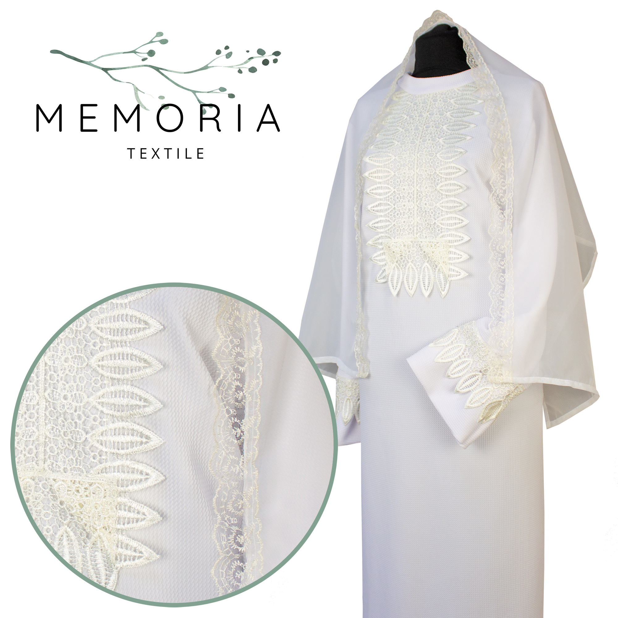Платье ритуальное "Элит-2" с шарфом белое (трикотаж)