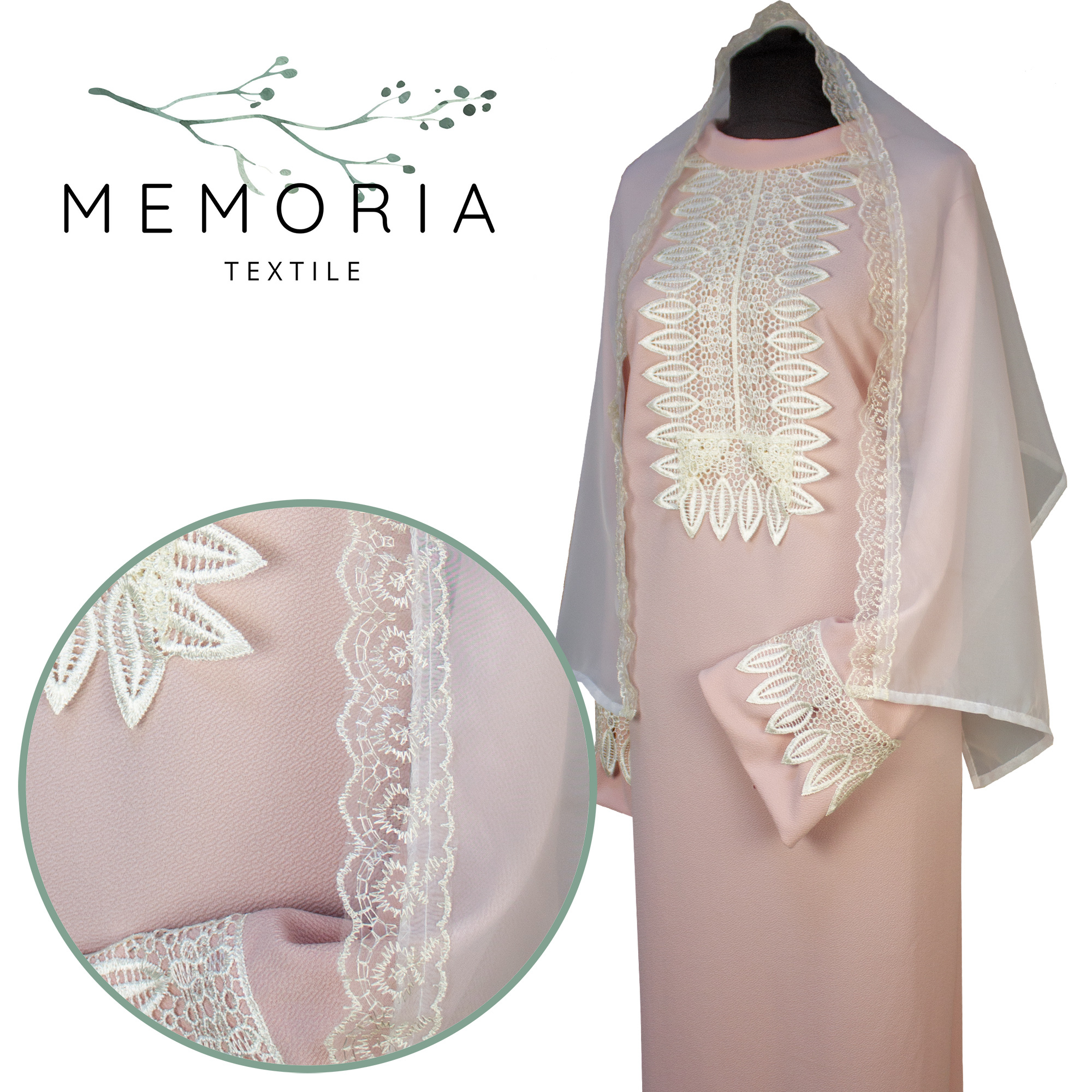 В комплекте шарф из вуали с кружевом в тон.