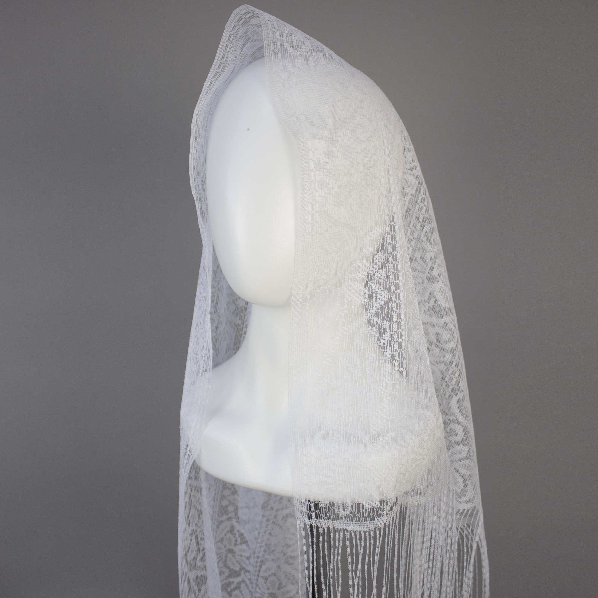 Шарф ритуальный тюлевый с кистями, с ажурным рисунком.