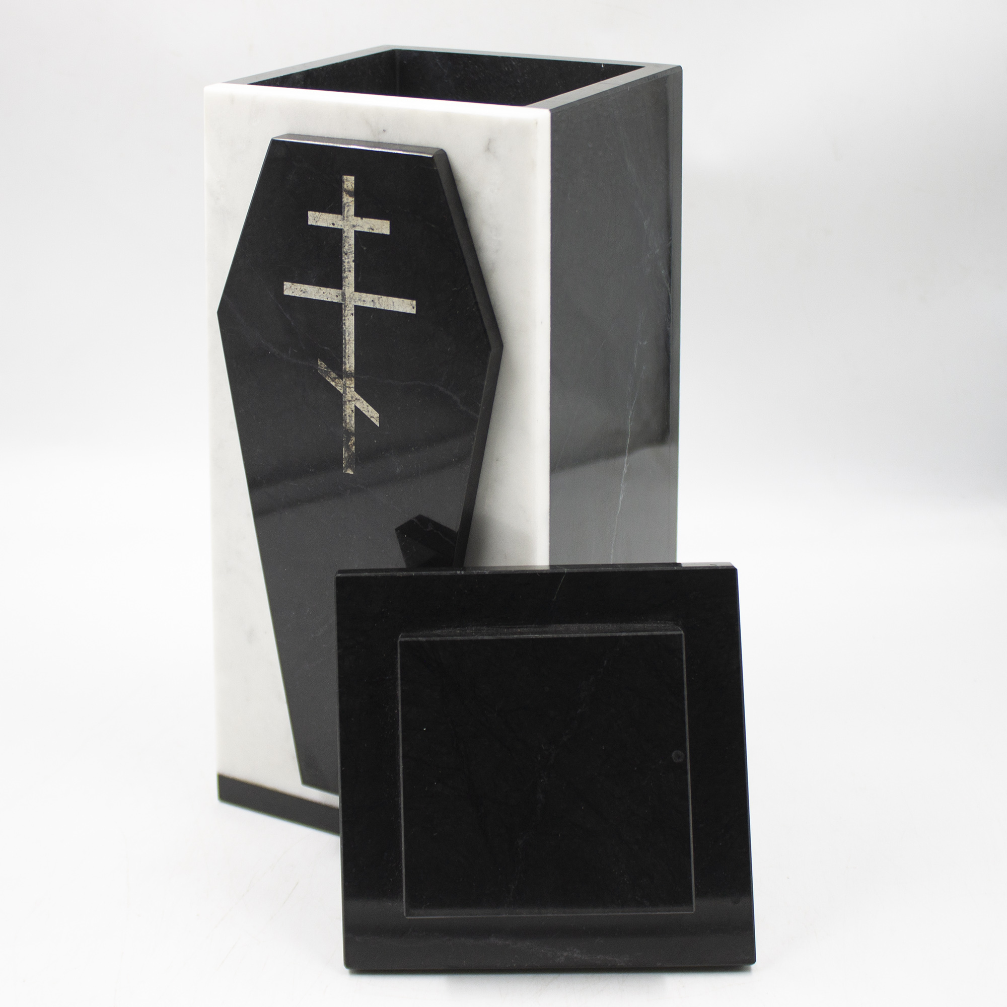 Необычный дизайн урны для праха и изящество полированного белого мрамора и доломита.