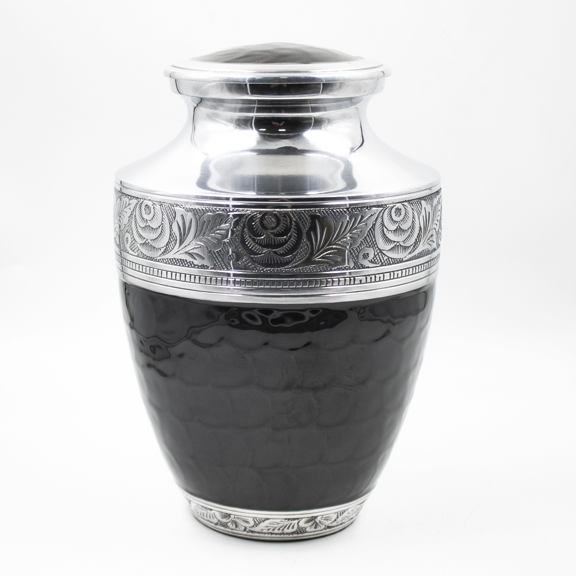 Урна для праха из толстостенного алюминия с декоративным перламутровым покрытием и гравировкой.