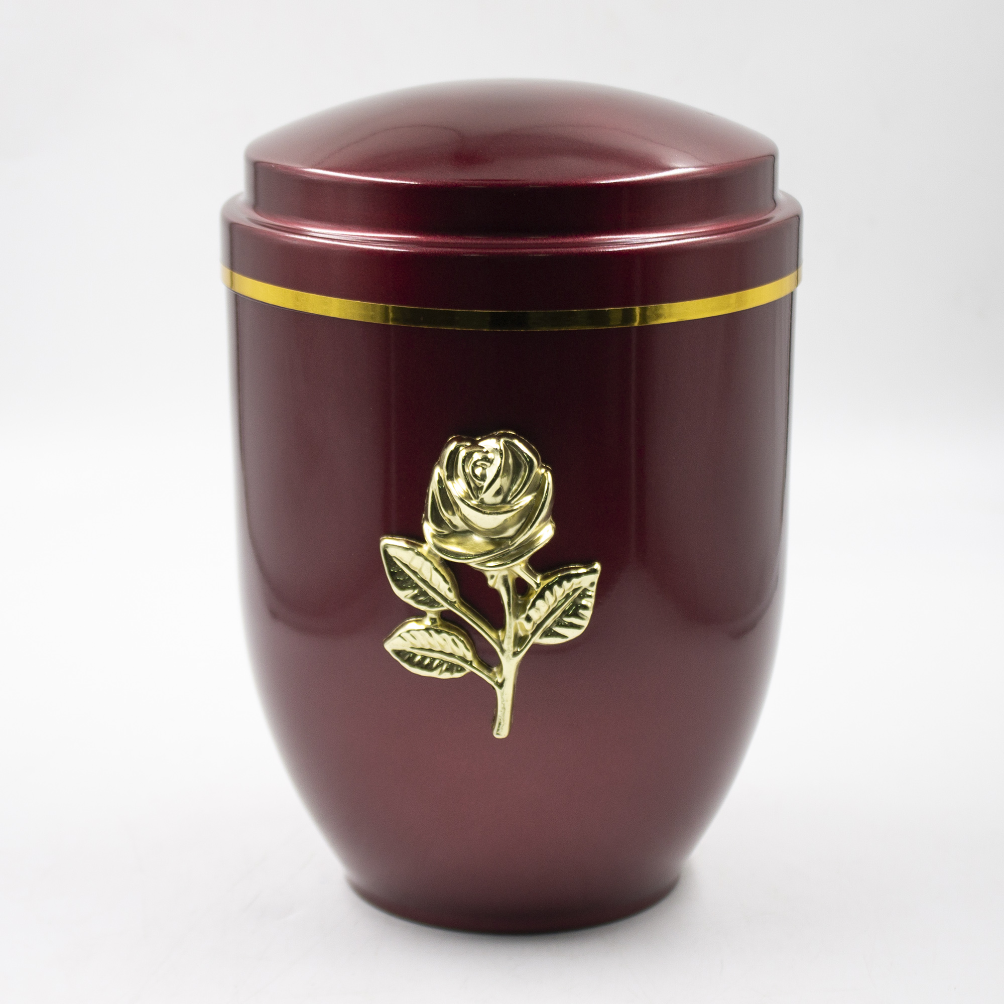 Погребальная урна традиционной формы с глянцевым покрытием. Долговечный материал, сохраняющий свои свойства долгие годы. Металлическая урна больше всего подходит для колумбариев и колумбарных стен, также может использоваться во всех доступных местах захоронения.