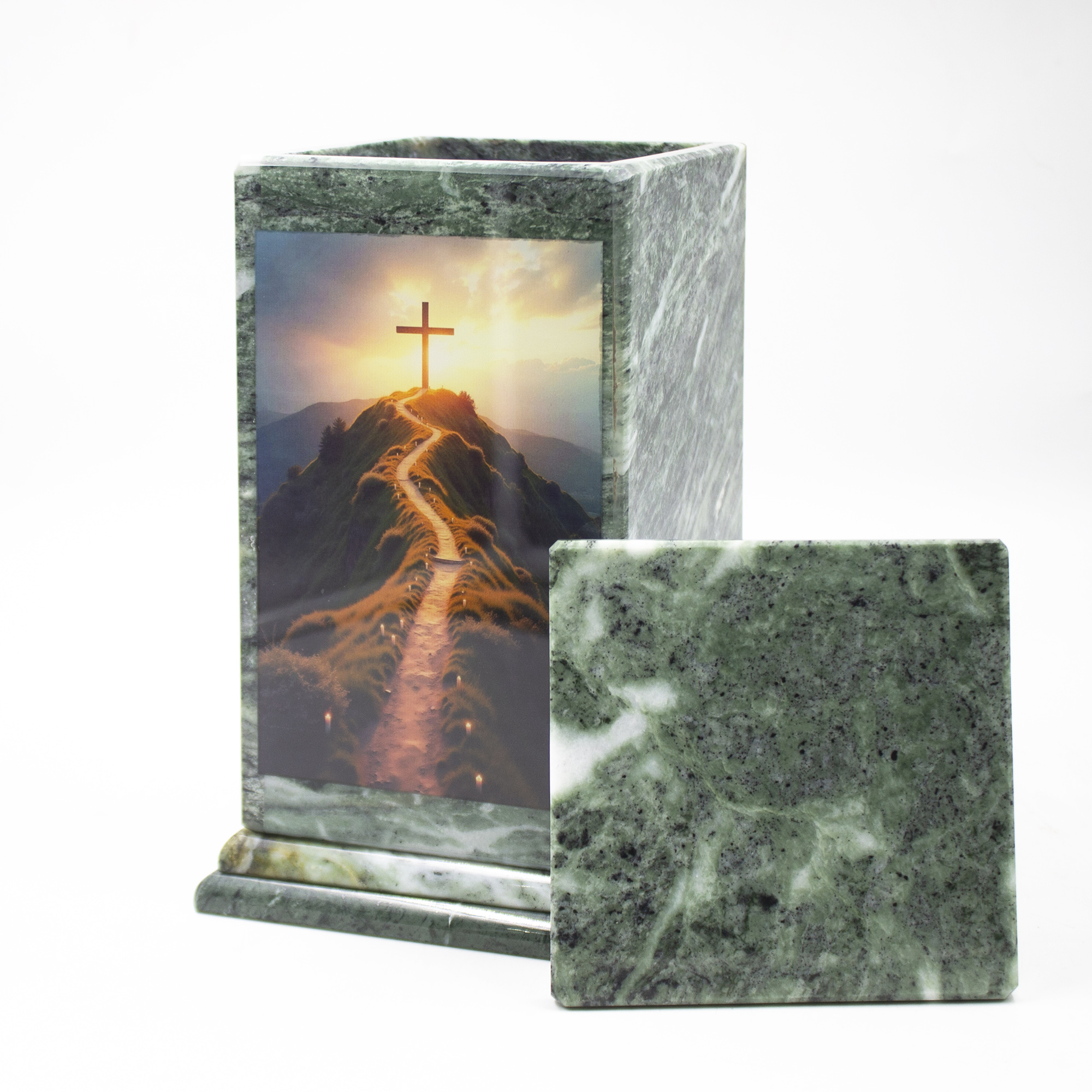 Урна для праха "Обелиск с декором" змеевик Голгофа