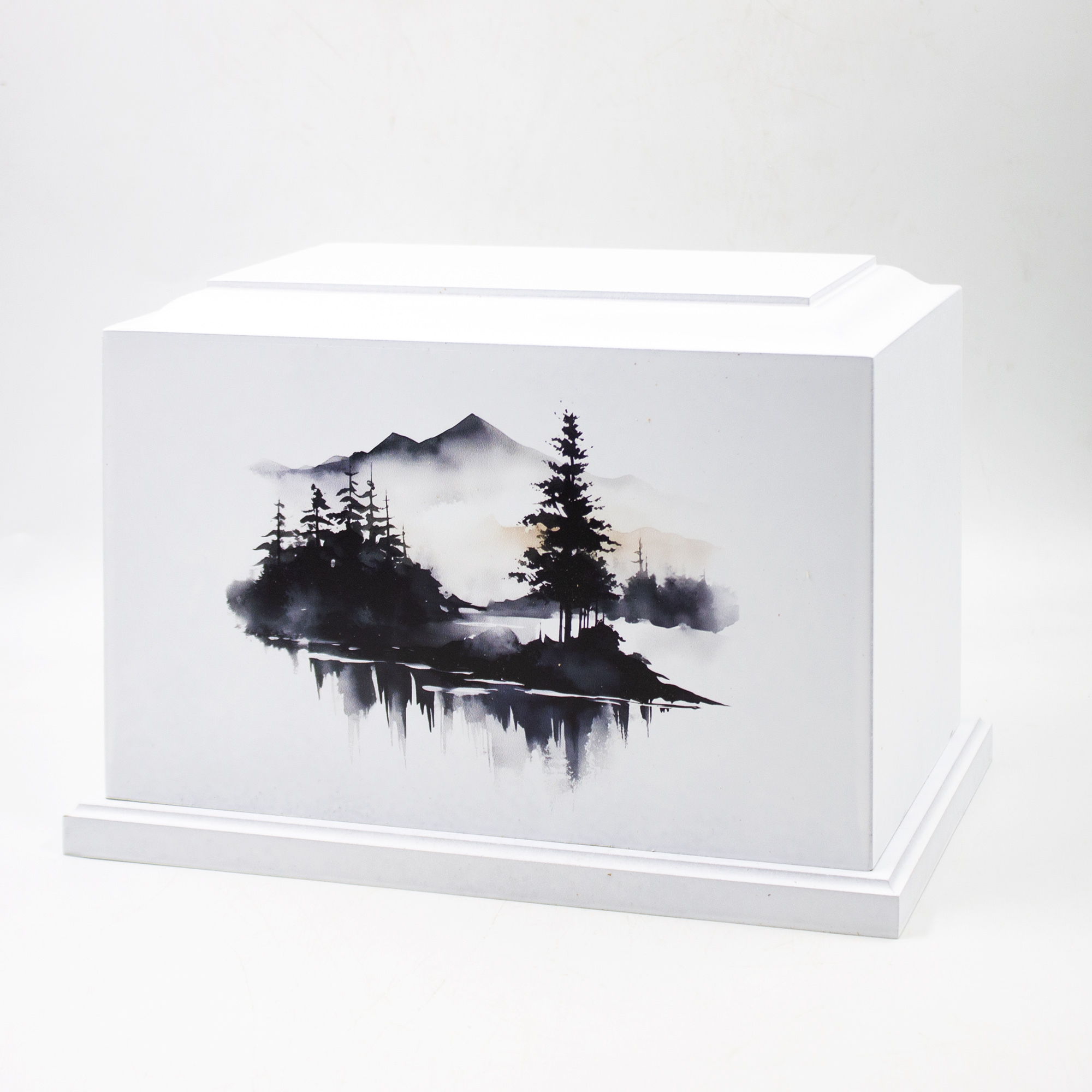 Новые урны для праха "Реквием" изготовлены из МДФ и покрыты эмалью. Прямая цветная печать.