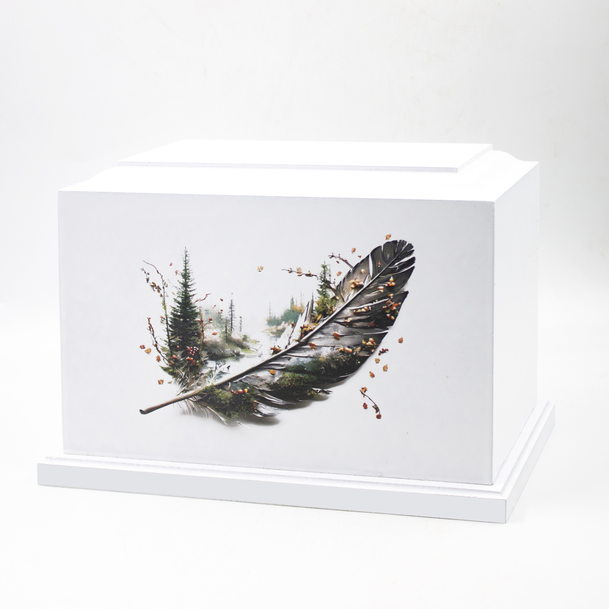 Новые урны для праха "Реквием" изготовлены из МДФ и покрыты эмалью. Прямая цветная печать.